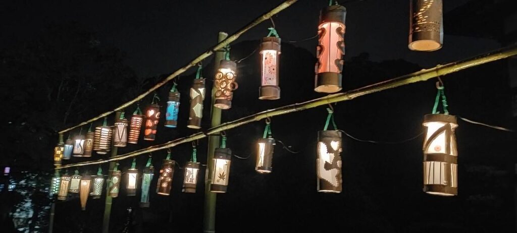 さらに、会場には「竹あかり」と呼ばれる竹細工も展示されます。竹をくりぬいて模様が型取られており、暗闇の中に美しい模様を浮かび上がらせます。